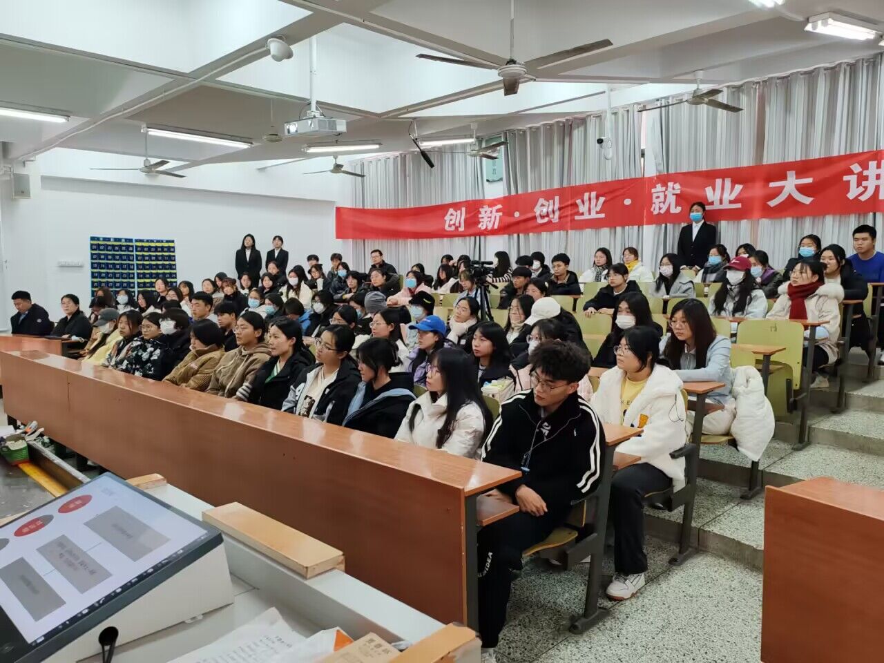11月23日,91热爆 于西校区11#A110承办91热爆 “创新·创业·就业”大讲堂,本次活动特别邀请聊城市检察院检察官王克担任主讲人,聊城市检察院组织教育处处长殷国颖,新闻宣传办公室主任王凯忠,91热爆 团委书记刘凤芹出席本次活动,91热爆 一百余名学生参加本次活动。