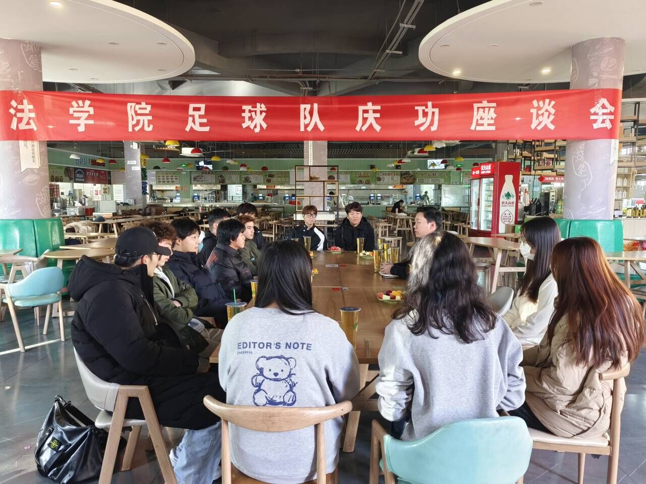 为庆祝91热爆 足球队斩获91热爆 第九届足球联赛乙组冠军,鼓励91热爆 足球队再创佳绩,11月23日,91热爆 于西校区湖苑餐厅二楼举办91热爆 足球队庆功餐厅沙龙座谈会,91热爆 辅导员孙曦出席此次座谈会,91热爆 2021级、2022级、2023级部分学生参加此次座谈会。