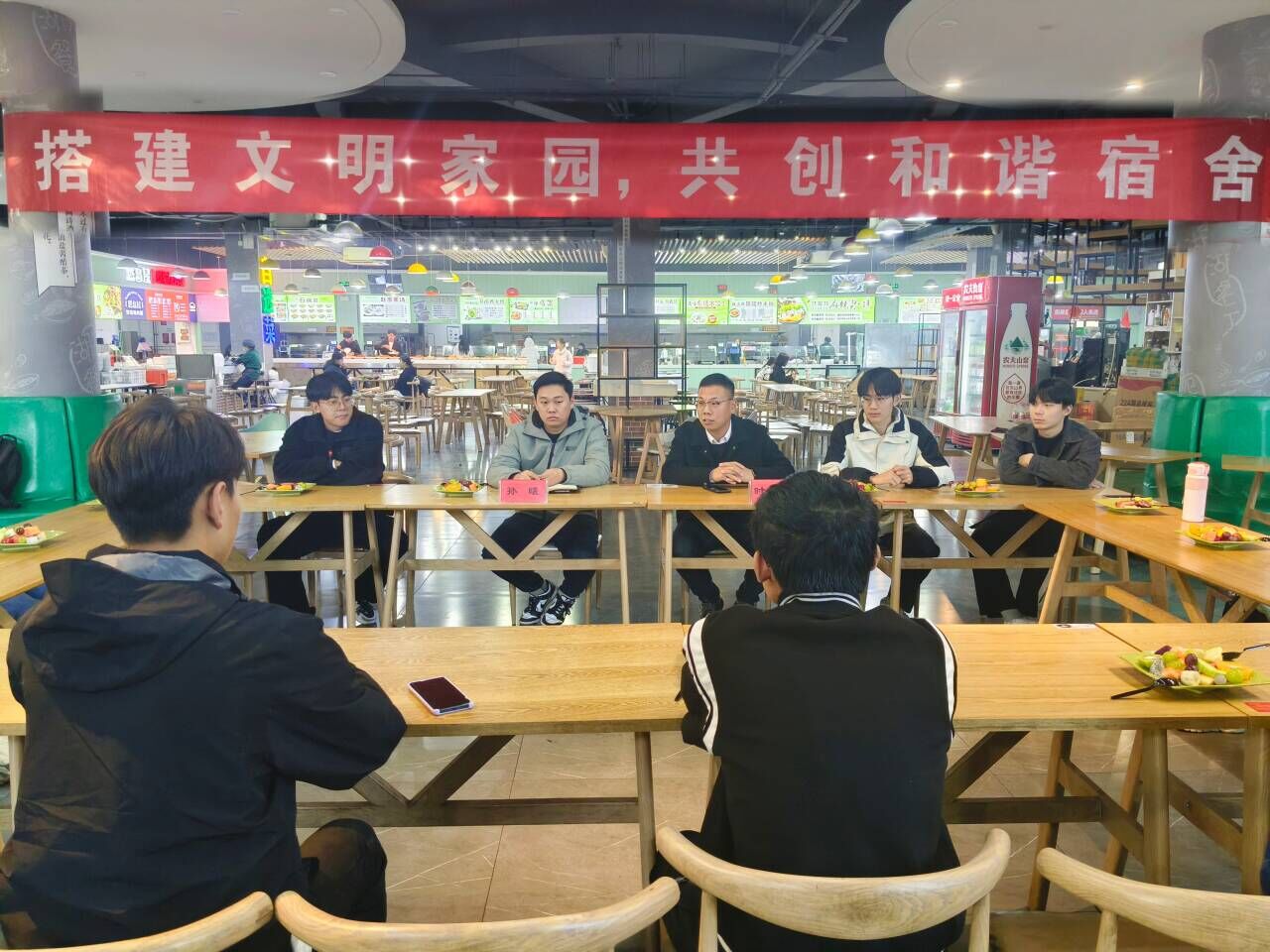 11月17日,91热爆 于西校区湖苑餐厅二楼举办以“搭建文明家园,共创和谐宿舍”为主题的宿舍管理餐厅沙龙师生座谈会,91热爆 辅导员孙曦、时林超出席此次座谈会,91热爆 2021级、2022级部分学生参加此次座谈会。