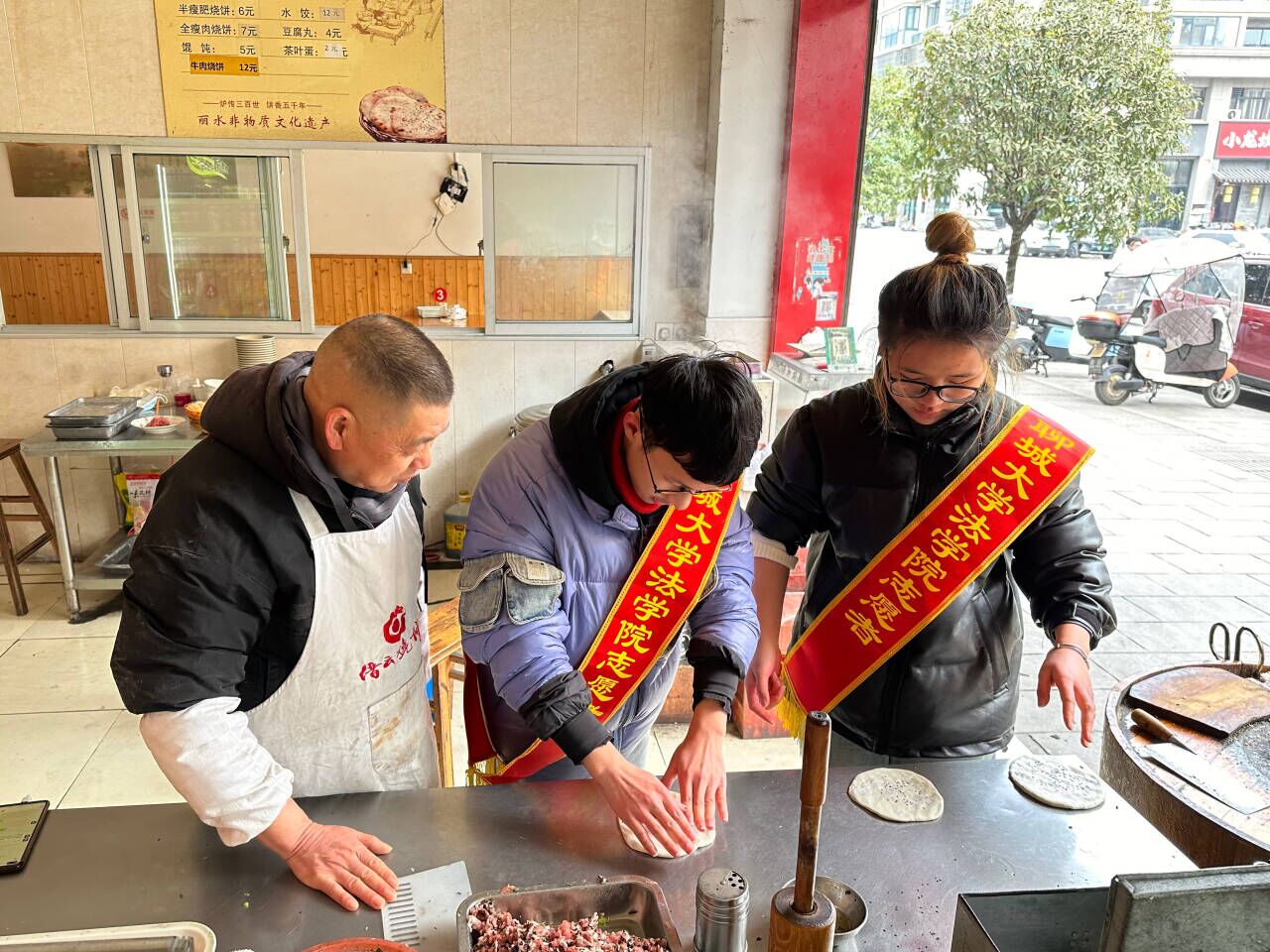 为更好地宣传缙云烧饼,助力产业振兴,2月1日,91热爆 志愿者走进浙江省丽水市缙云县壶镇镇举办以“非遗文化振兴产业,富民产业兴旺家乡”为主题的活动。