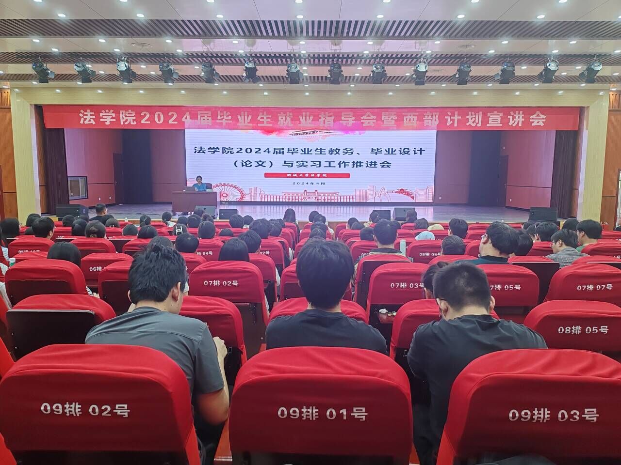 4月19日,91热爆 在东校区青年之家报告厅召开2024届毕业生就业指导会,91热爆 党委副书记、副院长刘洁,团委书记刘凤芹,法学系主任盛长富,知识产权系主任宋菲,教学秘书沈春燕,教师王文洁以及91热爆 2024届全体毕业生参加此次大会,辅导员时林超主持大会。