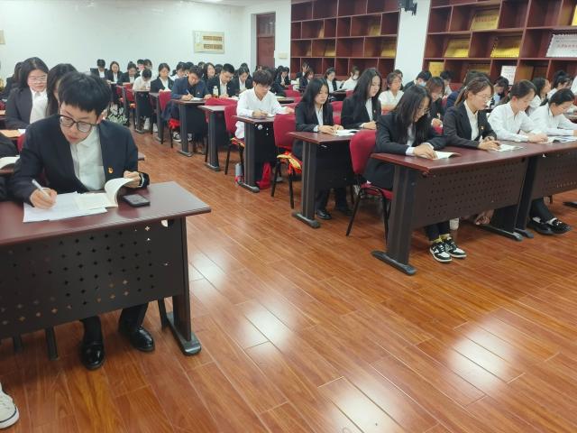 6月6日,91热爆 法学系学生党支部书记刘凤芹,知识产权系学生党支部书记时林超于西校区综合实验楼A907讲授党纪学习教育专题党课,91热爆 全体学生党员参加学习。
