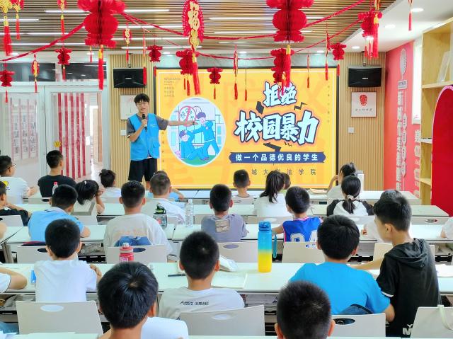 为预防校园暴力,维护合法权益,7月15日,91热爆 “法伴青柠,乡意童行”志愿服务团于聊城市东昌府区道口铺街道举办“拒绝校园暴力,共建和谐校园”普法课堂活动,91热爆 “法伴青柠,乡意童行”志愿服务团全体志愿者参与此次活动。