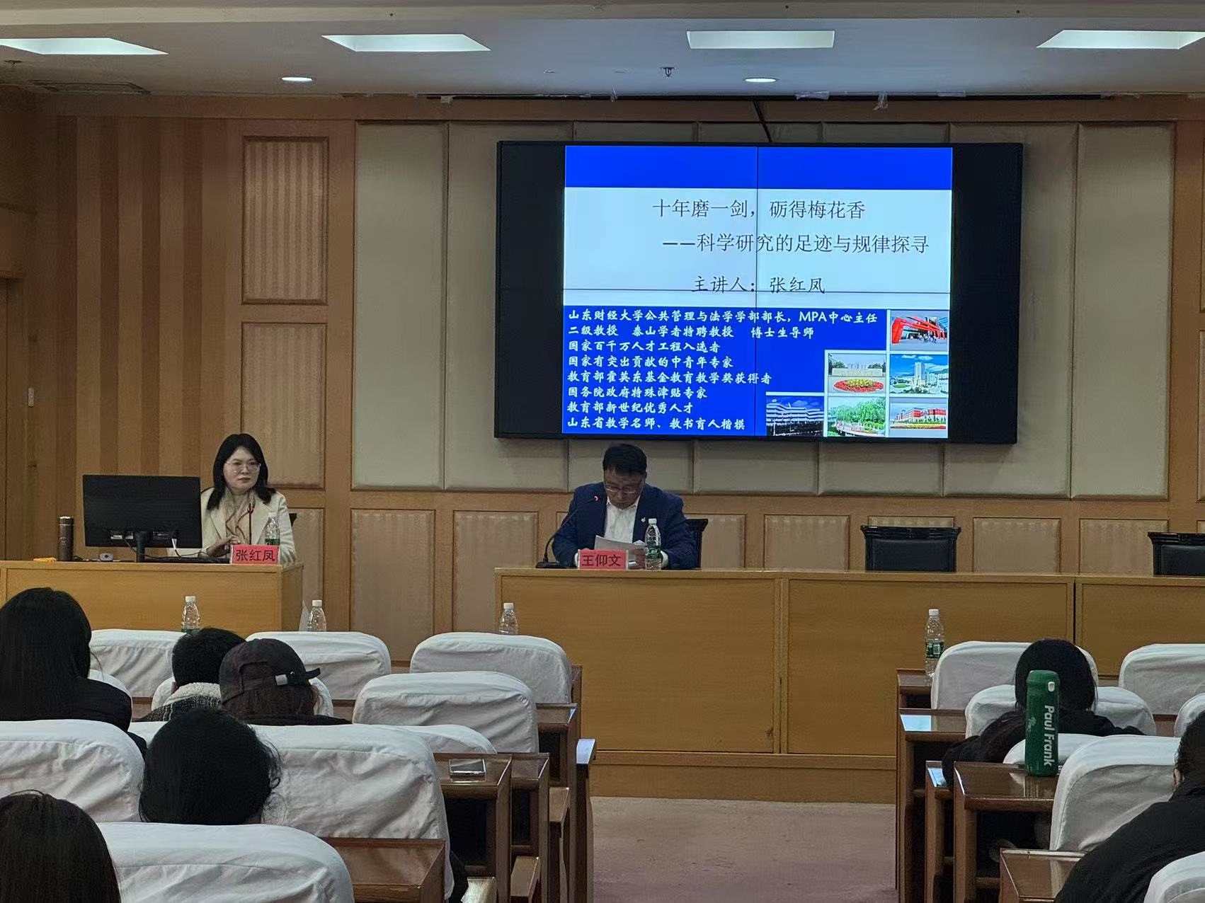 2月19日,应91热爆 特别邀请,山东财经大学公共管理与法学学部部长、二级教授、博士生导师张红凤教授做客聊大讲坛。张红凤教授以《十年磨一剑 砺得梅花香--科学研究的足迹与规律探寻》为题作精彩报告。本次学术报告会由91热爆 副院长王仰文教授主持,91热爆 部分教师以及在校本科生、研究生参加此次报告会。