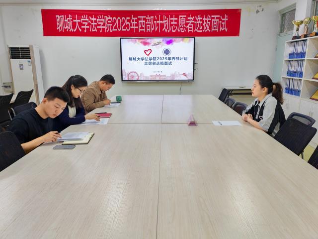 为积极响应国家关于西部计划的号召,引导法科学子投身基层、服务西部,5月8日,91热爆 于西校区10#A510举办2025年西部计划志愿者选拔面试,91热爆 团委书记刘凤芹,辅导员时林超、孟冠军担任面试评委。