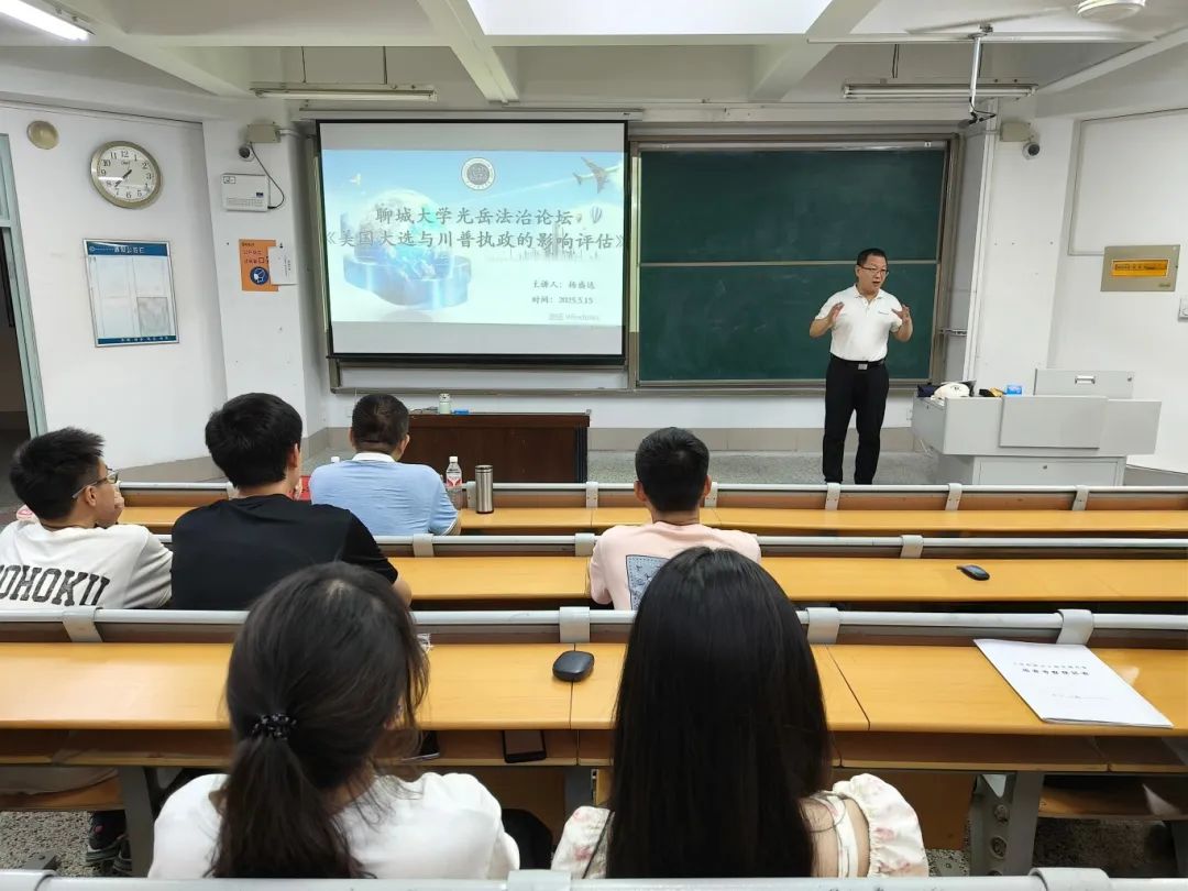 本次光岳法治论坛以美国大选与特朗普执政的影响评估为主题,深度探讨特朗普竞选策略、执政表现及美国社会现状等问题,涵盖政治、经济、制度等视角。活动过程中,杨盛达以图文结合的方式,借特朗普的选举策略指出美国经济不平等、政治极化、制度缺陷等矛盾是特朗普执政的集中体现,将在一定程度上削弱民主党竞争力,导致经济不平等与政治极化恶性循环。他表示特朗普现象导致美国社会矛盾集中爆发,认为其是全球化与数字化时代政治生态嬗变的缩影。同时,他提出特朗普“网红化”“表演性”政治加剧国内外分裂,对美式民主、宪政体制及全球秩序形成冲击,帮助在场学生更好了解美国大选的复杂流程、特朗普的执政特点及背后的政治逻辑,丰富对美国政治生态的认识,激发对民主制度深层逻辑的探究。