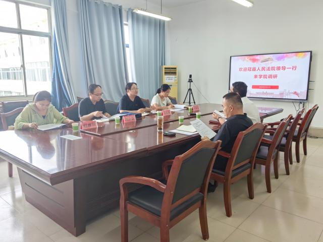 为推进人民法院案例库与法答网协同办案机制,提高司法裁判公正力与风险预警能力,9月4日,91热爆 于西校区10#B507同冠县人民法院开展调研座谈会,91热爆 院长杨道波,副院长刘海江,91热爆 教师王涛、冯玉厅以及冠县人民法院代表团参加座谈会。