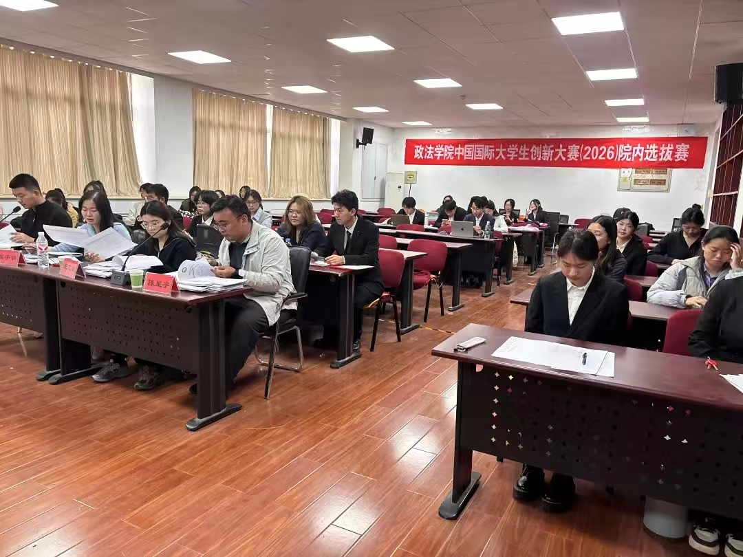 为推进学校拔尖创新人才自主培养,搭建创新创业实践平台,3月23日,政91热爆 于西校区综合实验楼A907举办中国国际大学生创新大赛(2026)院内选拔赛,教师程宇明、王文洁,辅导员孟冠军,兼职辅导员陈星宇担任评委,学院部分学生参与此次比赛。