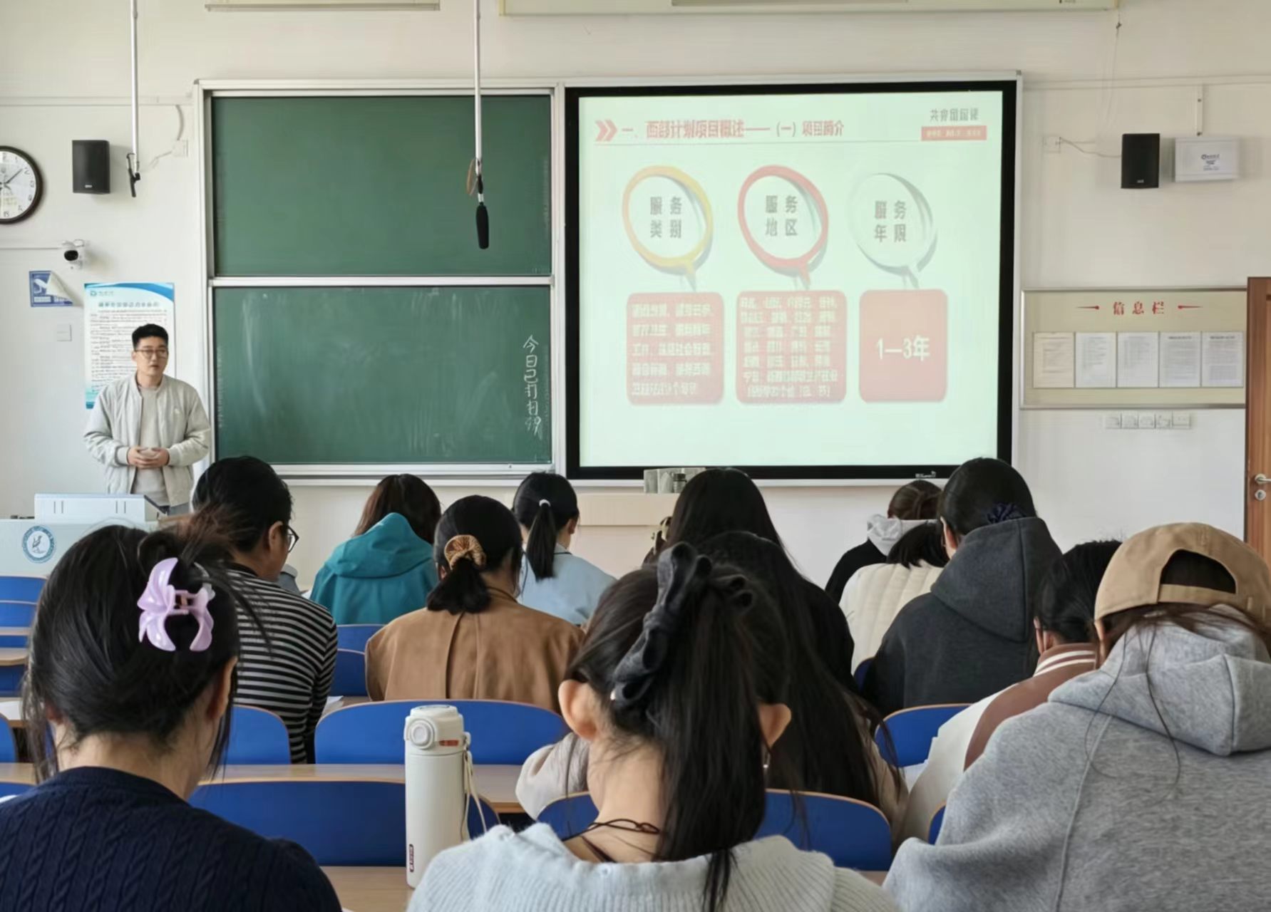 主讲人于进老师围绕西部计划核心内容展开系统讲解,从项目定义、服务类别、服务地区及服务年限等基础信息入手,清晰梳理西部计划的招募流程、报名条件与选拔标准。结合政91热爆 专业特色,他重点解读学子与乡村社会治理、基层青年工作等岗位的适配性,指出他们在公共事务处理、政策解读等方面的专业优势,为学子投身西部基层提供精准指引。接着于进老师深入剖析西部计划的政策保障体系,详细介绍服务期间的生活补贴、社保缴纳等福利,以及服务期满后考研加分、考公定向招录、学费补偿等优惠政策,切实解答学子关于职业发展的核心疑虑。同时,于进老师结合往届优秀志愿者的服务事迹,生动阐述基层工作的实践价值与成长意义,激励学子以青春之我担时代之责。互动答疑环节,同学们积极提问并围绕地区选择、岗位匹配、适应基层工作等问题展开交流,于进老师逐一耐心解答,现场氛围热烈浓厚。