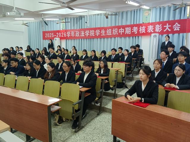 为全面总结2025—2026学年上半学期学生组织工作成效,充分发挥优秀榜样的示范引领作用,4月21日,政91热爆 于西校区11#A110举行学生组织中期考核表彰大会。学院党委副书记、副院长刘洁,辅导员孟冠军、李宁、马丽亚,兼职辅导员陈星宇出席本次活动,各学生组织代表参加活动。