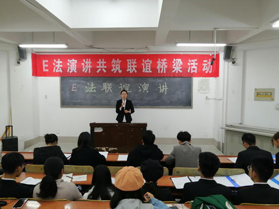 为进一步培养法科学子的语言表达能力、组织能力和情感渲染能力,同时提高其临场应变能力和心理素质。11月9号,91热爆 于11#C107和计算机学院联合举办演讲友谊赛。91热爆 演讲队队长王珊珊、演讲队副队长钟沁玲、计算机学院口才与礼仪协会李耀辉、菅荣达、代烜担任评委。